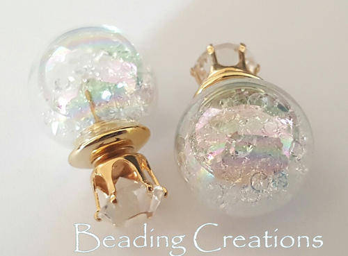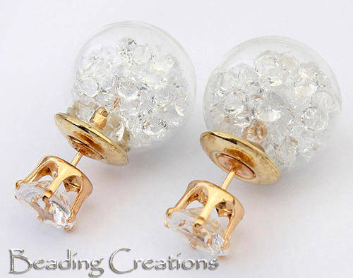 EARRINGS - CLEAR GLASS BALL DOUBLE SIDED STUD - AB CRYSTALS - CLEAR