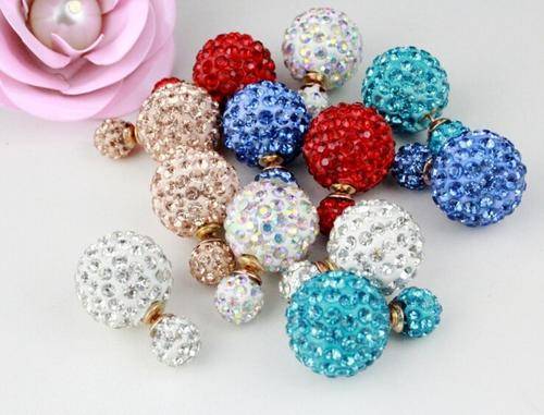 EARRINGS - SILVER SHAMBALLA GOLD RHINESTONE DOUBLE BALL STUD