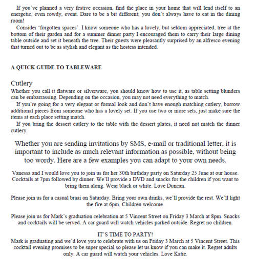 Many of the important events in our lives are made memorable when we gather with family and friends to share a meal. A stylish table complements both the food and the occasion and Easy Table Settings is filled with inspirational ideas to will make every occasion special. Each table setting includes beautiful photographs, accompanied by suggestions on how to develop the theme to suit your needs and resources