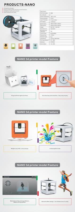 Because ABS consumables print, it will produce a large plastic burning smell, which will cause slight pollution and damage to the human body. Nano printer is for children and families, so PLA filament is recommended.