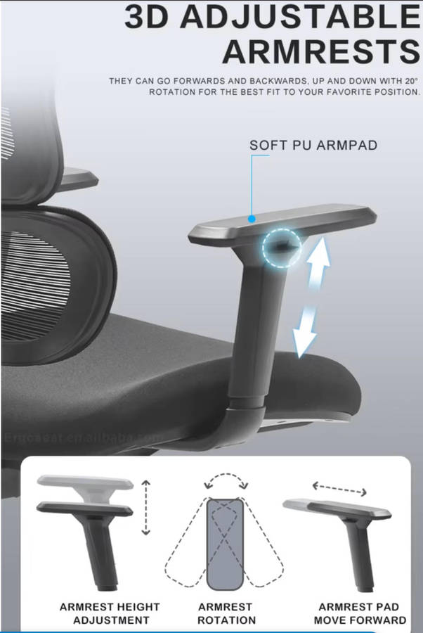 Experience top-tier comfort and style with the EliteMesh Ergonomic Office Chair - crafted for professionals who demand the best. The high-back mesh design ensures breathability, while the 2D adjustable headrest and 3D armrests with soft PU pads provide exceptional support. Designed with convenience in mind, the built-in coat hanger keeps your jacket organized and ready for any occasion.