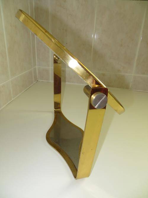 This wonderful counter-top mirror features a great oval mirror. The mirror is fully adjustable and is in good condition. Base has a few spots where the chrome finish has came off. A neat piece of advertising from days gone by.