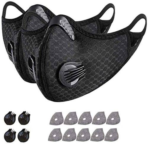 Ecnobia Reusable and Breathable, Face Bandanas with Double Breathing valve, Anti-Haze Dust, for Adults (2Pcs Black+4Pcs Breathing Valves+10Pcs Filters)