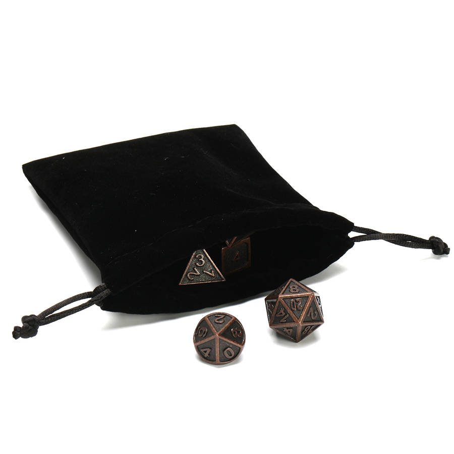 Specification: Brand:ECUBEE Material: Metal Bronze Qauntity:7 Weight:150g(approx.) Features: 1)Come with numbers clearly carved on the gaming dice. 2)Made of zinc alloy material, durable and solid construction. 3)It is ideal set to add more fun to dungeons and dragons board games. 4)Each set comes with a free flannel drawstring pouch to store your dice when no use. 5)Included style: one d20, one d12, two d10 (00-90 and 0-9), one d8, one d6 and one d4. 6)Suitable for any RPGs such as Dungeons and Dragons, Pathfinder, Shadowrun, Savage World, Math Games or anything else you can think of. Package included: 7 X Polyhedral Dice 1 X Dice Pouch More details:
