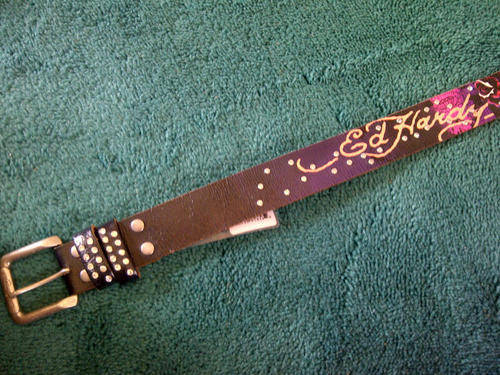 Ed Hardy "Web of Love"  Leather Belt