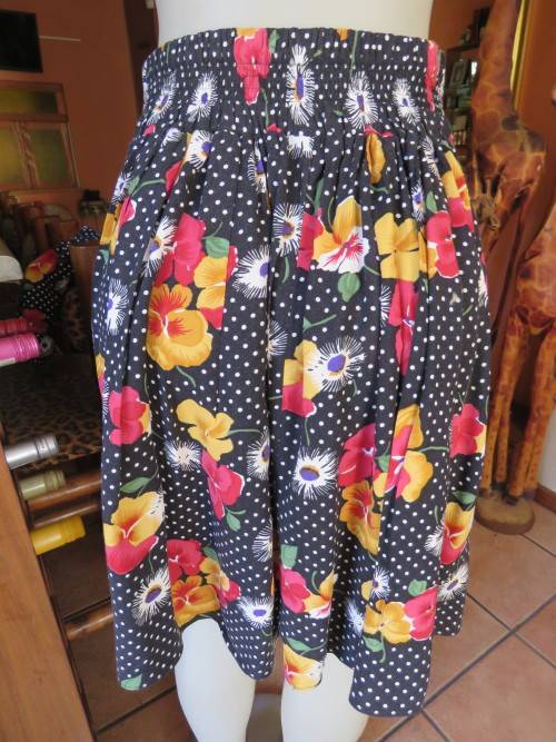 Edgy 100% viscose 2 piece outfit from the 80's from 'TRUWORTHS' in 36/12.Knee length skirt and short top.Pointed front yoke with knife pleats.Back gathered with wide elasticated waistband.Short sleeve button down top with pointed fronts.Good condition.