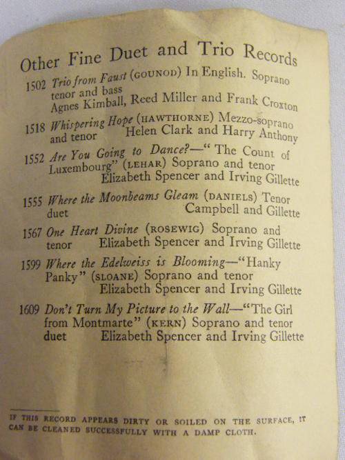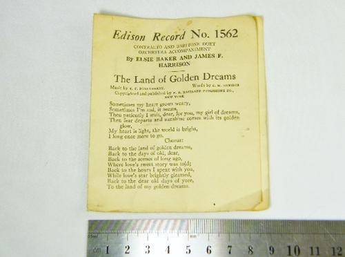Edison Blue Amberol phonograph record # 1562 The Land of Golden Dreams - Elsie Baker & Harrison
