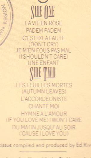 Edith Piaf , The Great Edith Piaf. This LP was made in 1981 by CBS in the UK and is in excellent condition. The cover is in good condition, with some creasing and slight wear to the edge.