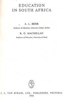education In South Africa By A.L. Behr & R.G. Macmillan