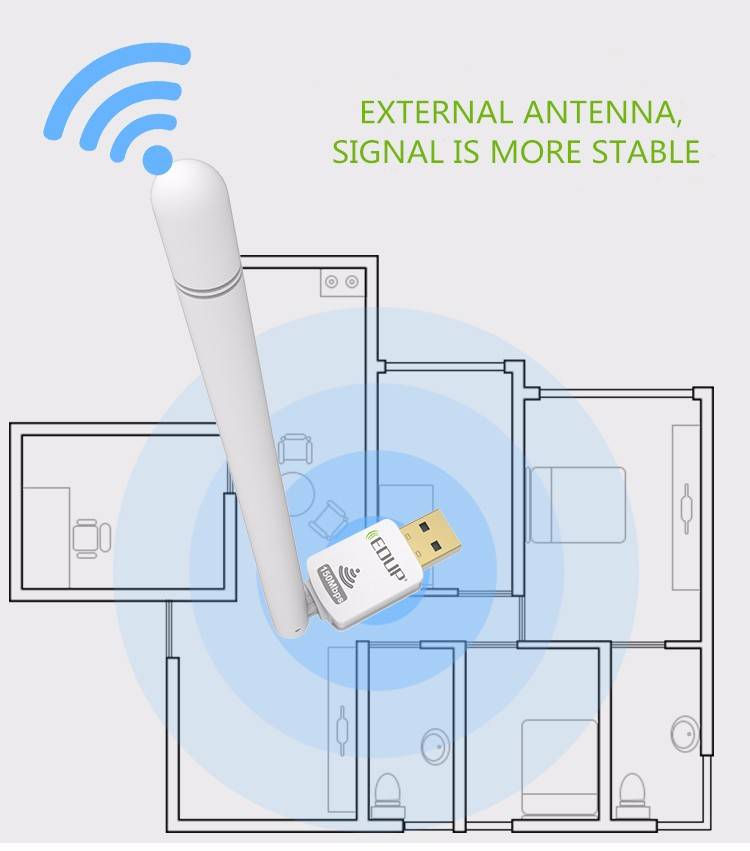 1. Plug and Play. 2. Using 11n technology, significantly enhance penetration, and with a 6dbi antenna, signal is more stable. 3. Antenna support 90° rotating, flexible and more practical. 4. Support AP mode function. 5. Widely compatible, support Windows XP / 7 / 8 / 10
