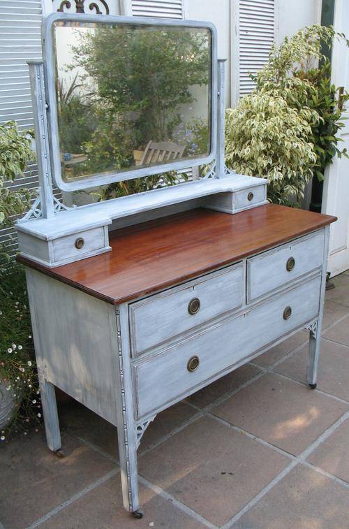 Edwardian mahogany grey painted dressing table with drawers and bevelled mirror