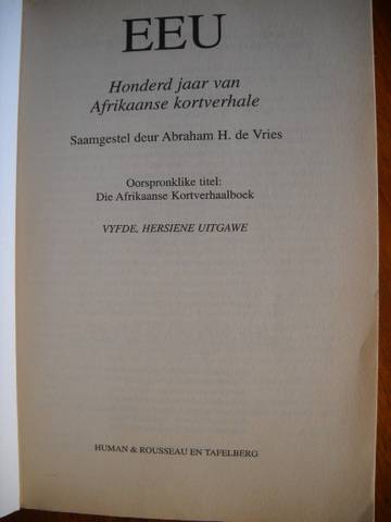 EEU 100 jaar van Afrikaanse Kortverhale Saamgestel deur Abraham H.de Vries