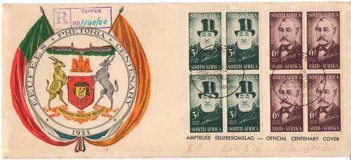 EEUFEES FDC WITH BLOCKS OF 4 AND TEPPEX CANCEL ON REAR