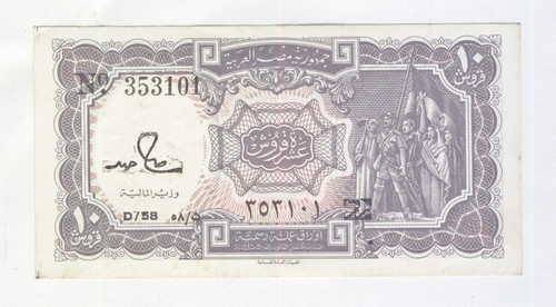 Egypt 10 Piastres Banknote - 1952-1958 - AU crisp condition