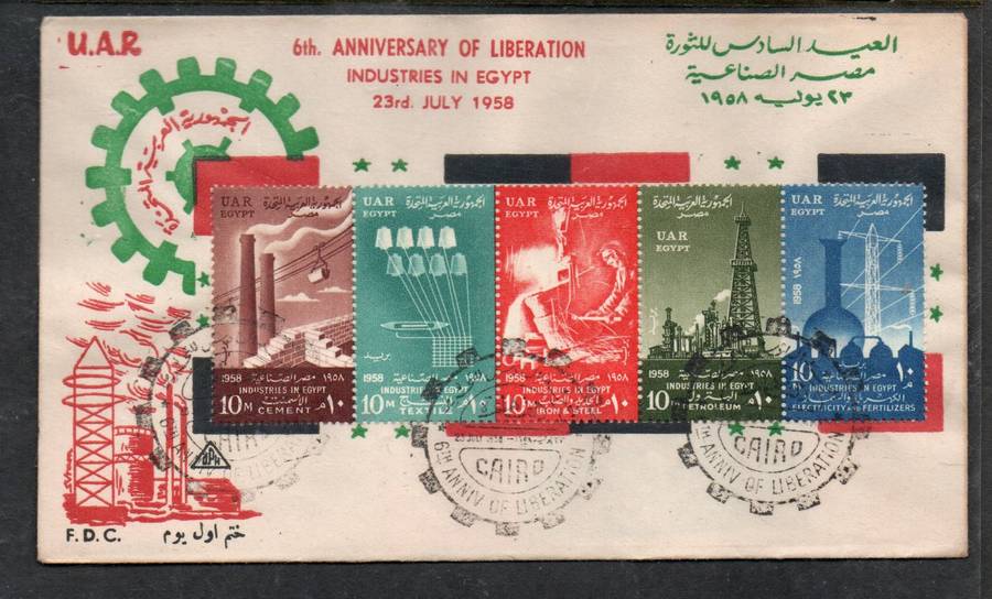 Egypt UAR Liberation Anniversary, Industries FDC CAIRO 22 JY 58 cds