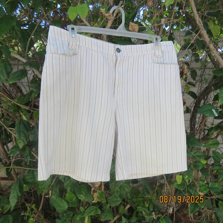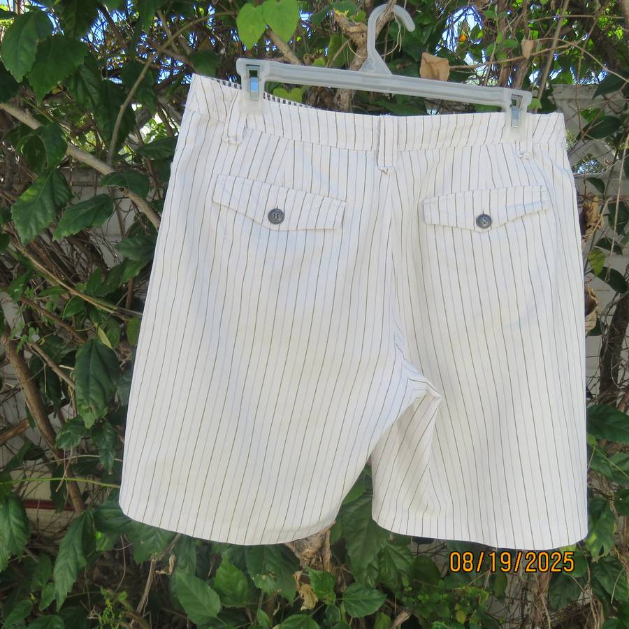 HANG TEN white cotton men's shorts with green-grey vertical stripes. Size 38.