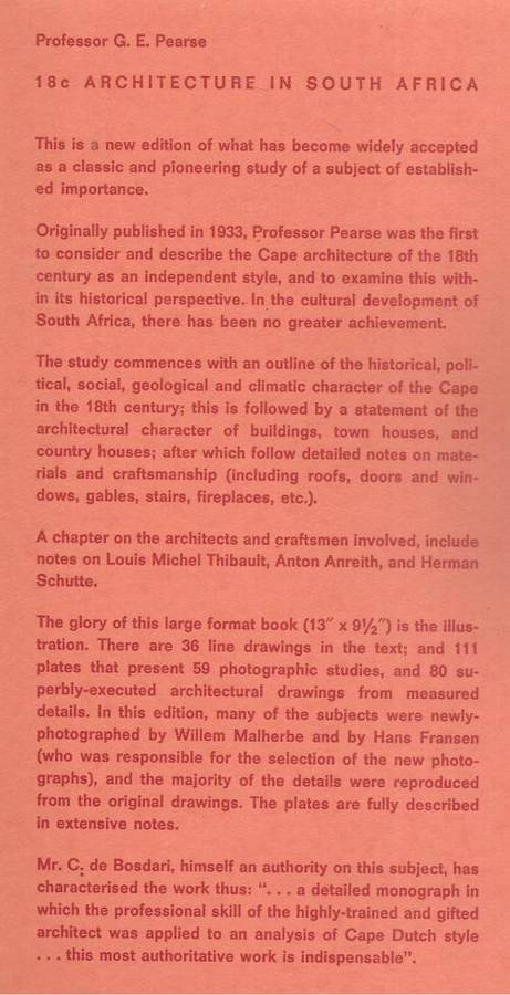 Eighteenth Century Architecture in South Africa by: G. E. Pearse