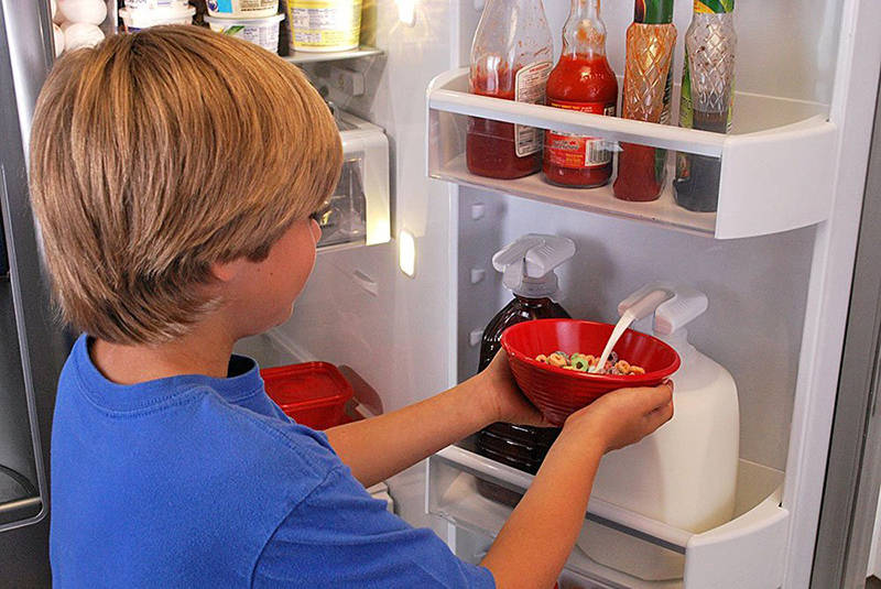 This requires no lifting, easy one hand use, and the kids can help themselves.