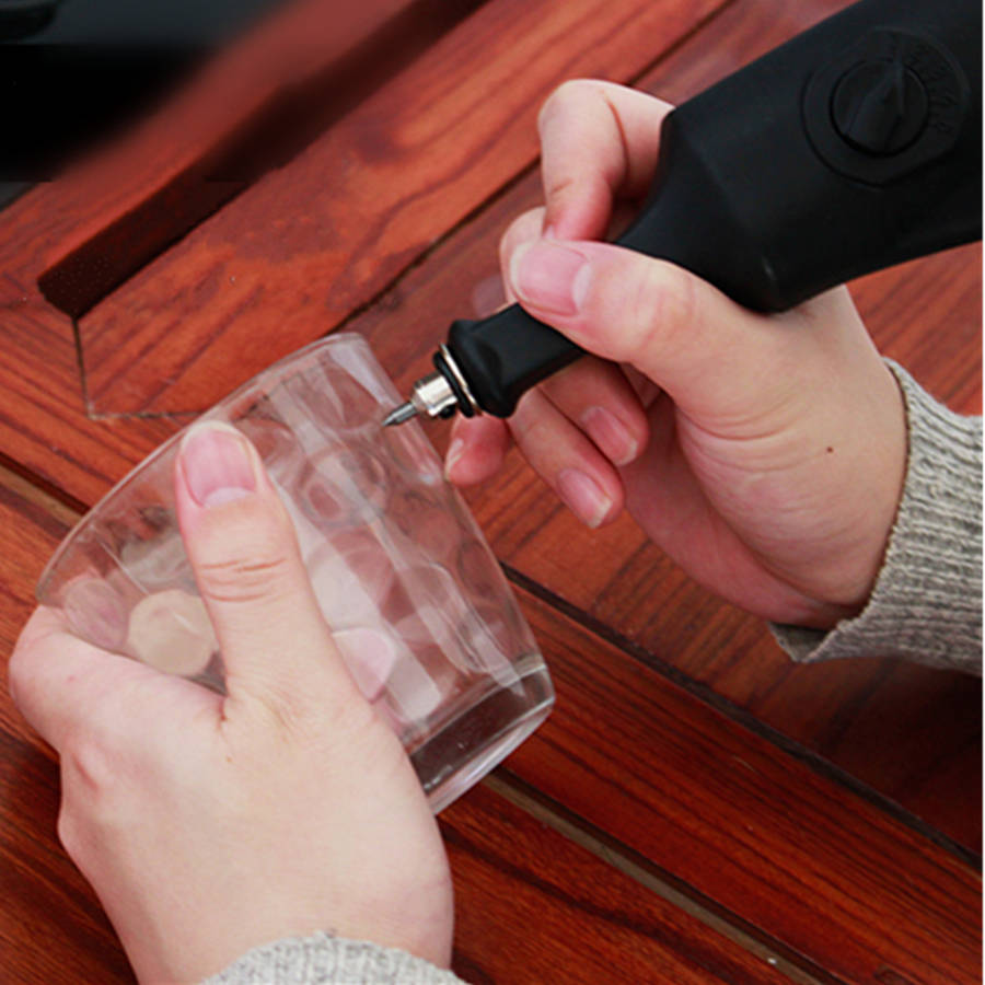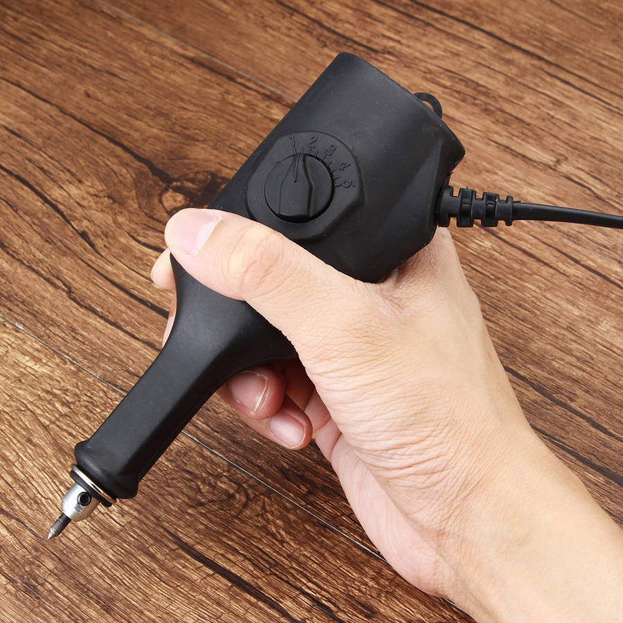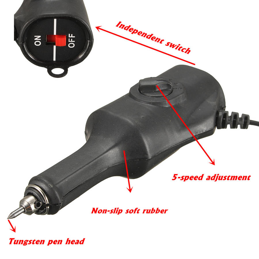 Slightly tilt an angle (about 45°) like a pen, and put your hand on the table. Don't press it hard when you are engraving. It is slower than the normal writing speed. You can adjust the writing stroke by adjusting the gear position.