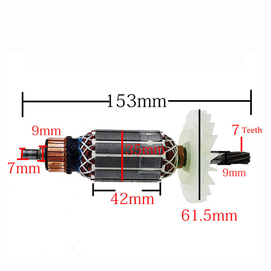 Description: Electric Hammer Rotor 7 Teeth Motor Rotor Accessories For Bosch GBH2-26DRE Impact Drill Machine Specifications: Material: Copper Total Length: 153mm Tooth Width: 9mm Teeth: 7 Features: - Easy and fast replacement; - Increase the life of your percussion drill; - Rotor forBosch GBH2-26DRE impact drill machine. Package Included: 1 Pc x Electric Hammer Rotor More Detials: