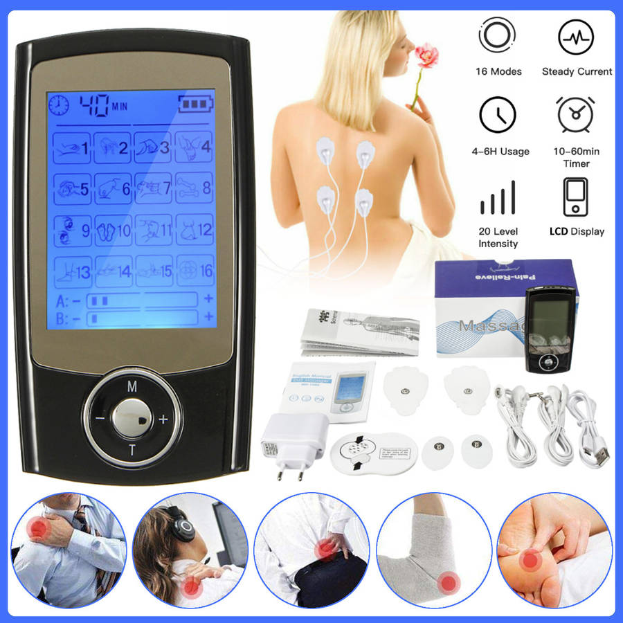 Electric Muscle Stimulation Therapy Tens Unit 16 Modes Massager LCD Display Machine Pain Relief