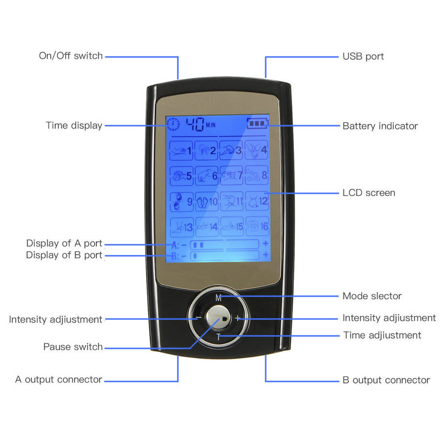 - 2 Outputs: 2 outputs(A,B Channel) are isolated and has the same power, allow 2 sets of pads to be applied to the different areas at the same time. Also, you can share with your friends or family members to have a fantastic massage experiences together.
