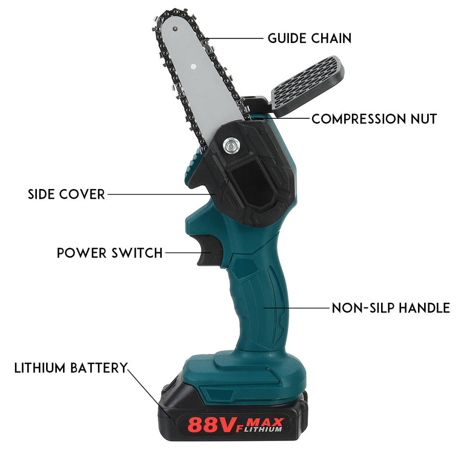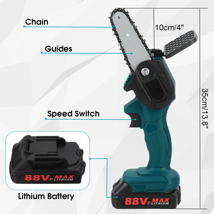 88V Electric Saw Cordless One-Hand Chain Saw Woodworking Cutter W/ 1/2pcs Battery