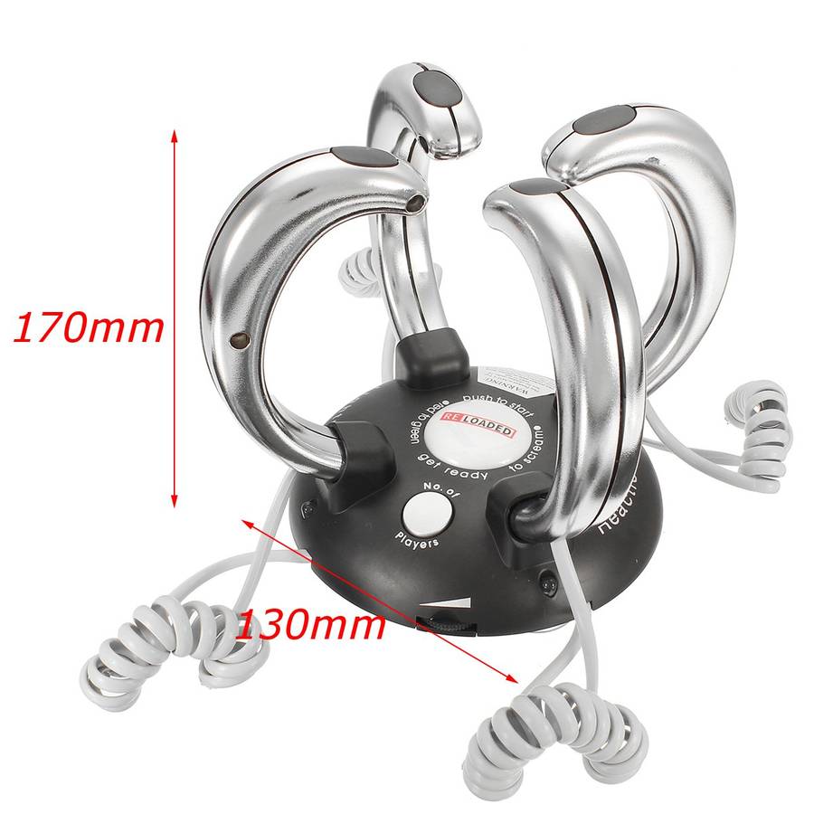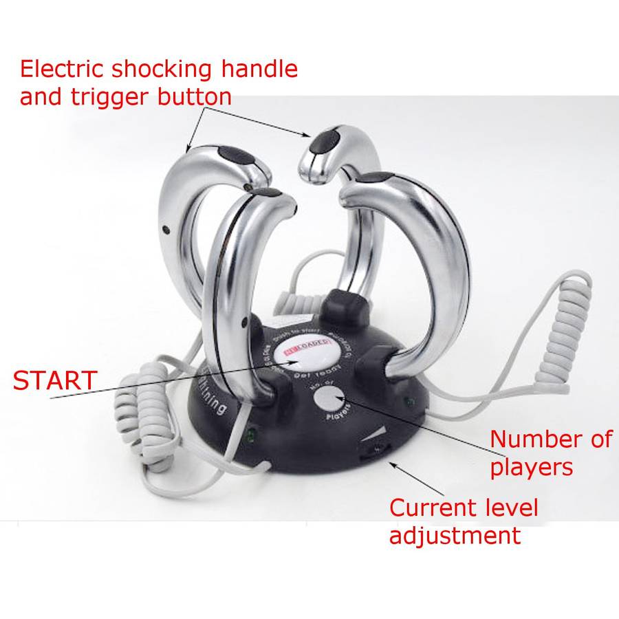 Features: ¿¿¿ Safe voltage, harmless to human body, ¿¿¿ Applicable to bar game, home and party game ¿¿¿ Suitable for 2-4 people ¿¿¿ Two game modes ¿¿¿ Can specify the object of the shock ¿¿¿ 2 level, high/low, two electric shocks
