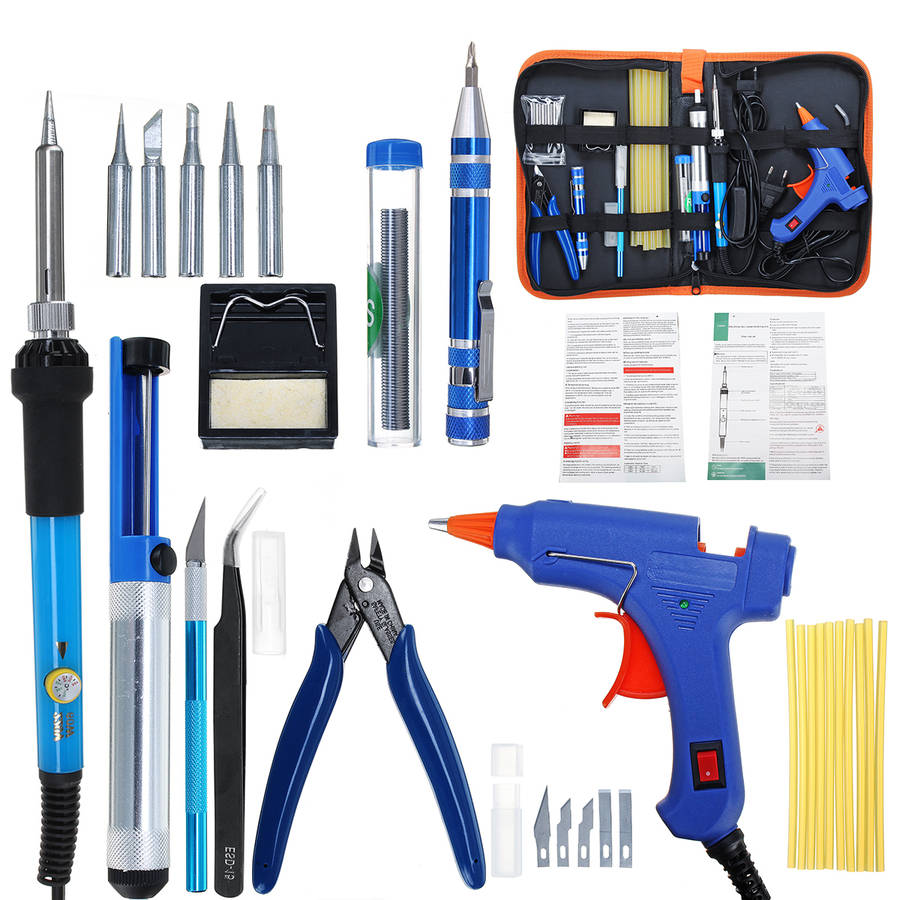 1, 29-in-1 Full kit: This kit comes with soldering iron, 5pcs spare solder tips, 6pcs soldering tool, anti-static tweezers, Soldering Station and so on, full range, easy to use.