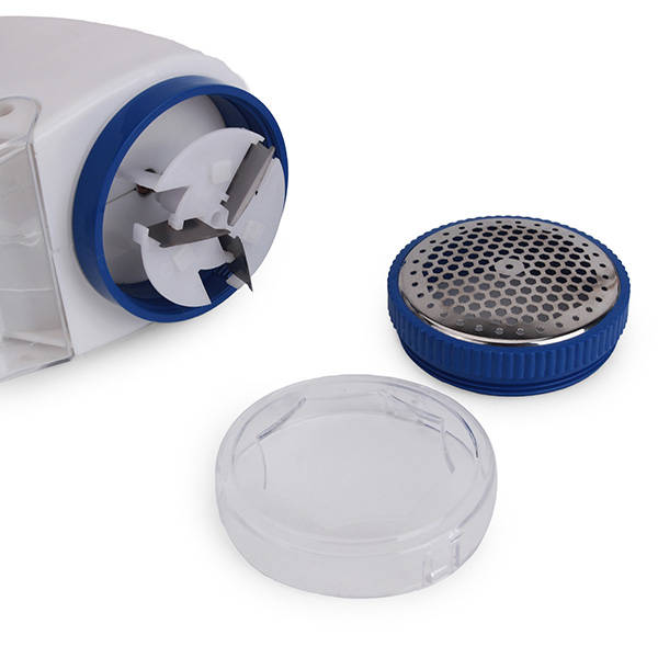 Fuzz, lint and pills are suctioned into the holes, cut off by the rotating blade and then deposited into the lint chamber. Specification : Color : Withe and Blue Rated Voltage: 220V 50HZ Rated Power : 4W Power Cord Length : 130 cm Package Includes : 1 x Mini Electric Fuzz Remover 1 x Power Adapter according to Your Country Details Pictures :