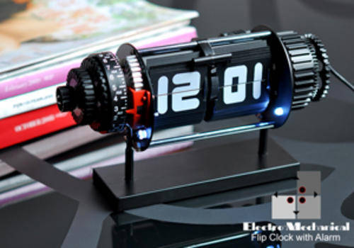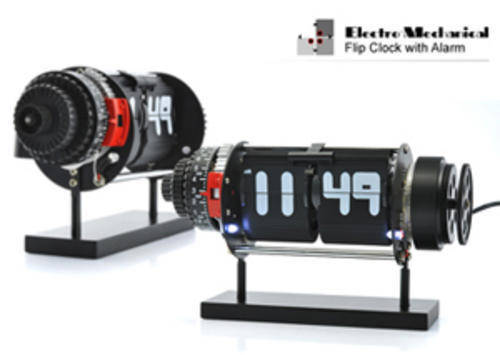 Electro-Mechanical Flip Clock with Alarm and White LED Lights (Black)