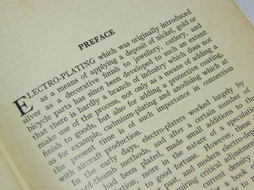 Chapters following dealing with a number of specialised applications of electro-deposition such as in the printing industry, hardware & jewellery trade. A separate chapter is devoted to the subject of anodising or the artificial production of a film of oxide