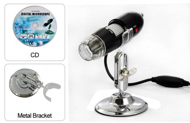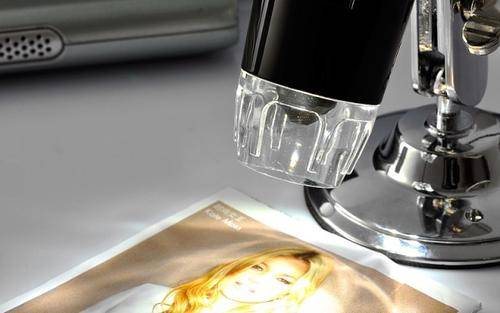 USB Digital Microscope with 200X Zoom, 640x480 native video resolution, and with 4 bright LEDs to view images clearly.