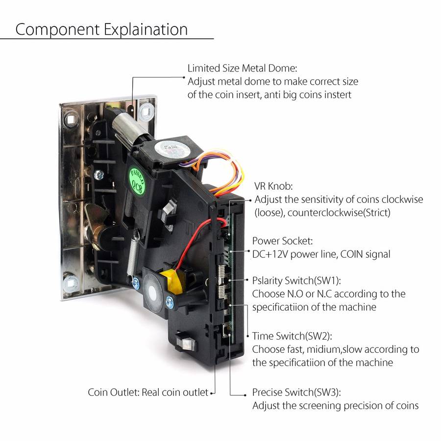 5.If find the coin pass unsmooth, please adjust the precision switch, or turn the VR knob to the suitable direction.