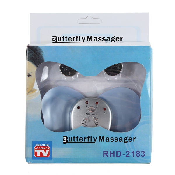 Featrues: Compact size and can be used anywhere and anytime Safe and convenient, quick and quiet Provides a really simple way to relieve pain in shoulders, back, waist and other parts of the body Stimulate muscle by a simple relaxing electronic impulse Improve blood circulation Gradual release muscle pain Recovery from fatigue Help fat exercise, burn and decompose Contract and expand the targeted area to tone abs, thighs, arms, etc With 10 vibration intensity options and 6 working mode options for your choice. Specifications: 4 LED lights: L1, L2, L3, L4 10 intensity options and 6 working mode options Chrome plated buttons Powered by 1 CR2032 batteries (included) Size: 110x80mm(LxW) Color: Random color Operation instructions: Clean the desired massaging areas of the skin Peel off the transparent film from the jel pad Place the gel pads at desired areas of the body Press power on button Choose mode Adjust output level The massager can be switched off in between the cycle or re-switched on after one cycle as needed Package Included: 1x Butterfly Muscle Massager 2x CR2032 (3.0V) batteries 1x English Instruction manual