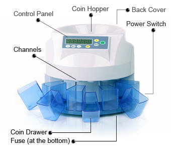 Lightweight and portable unit both counts and sorts coins from 5c - R5 in seperate compartments. Reports on total value as well as quantity of coins counted and can also batch coins in pre-set bathces (i.e. 50 50c coins in a batch, 100x R1 coins in a batch etc).