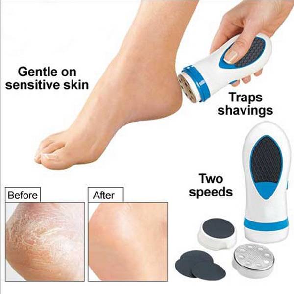 The gentle abrasion works with dual speeds to cover heels, soles, and toes.