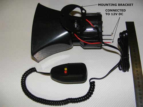 This Electronic Horn comes with a handy mounting bracket (to vehicle or hand piece etc.) ; hand microphone mounting bracket & the handheld microphone. It has three (3) standard electronic horns & is very handy for functions; coaching; road works; rallies; events etc. It connects to any 12 Volt DC battery or power source & has a 80 Watt output.