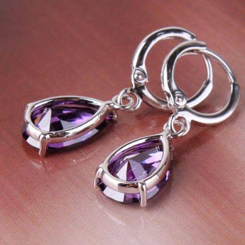 Earring size: 26X8mm Gem Type: Purple Amethyst Main Gem Size: 8X11mm Gem Quantity: 2 Cut: Pear Brilliant Color: Purple Metal Type:18k White gold filled Gram Weight: 3.6 grams Retail Price: R500 ![]() ![]() |