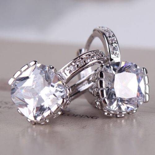 Earring size: 19X10mm Gem Type: White Sapphire Main Gem Size: 9mm Gem Quantity: 12 Cut: Princess Brilliant Color:Pink Metal Type: 18K White gold filled Gram Weight: 6.4 grams Retail Price: R550 ![]() ![]() |