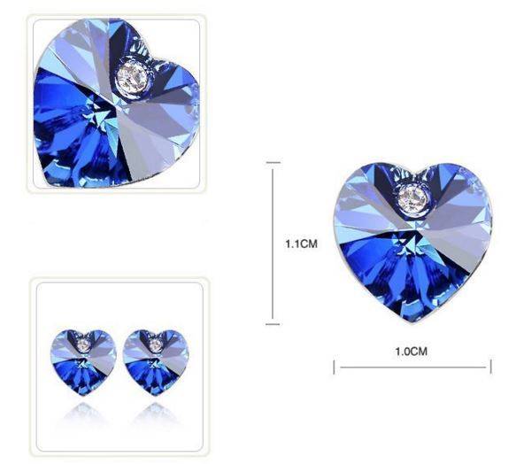 Elegant 18K White Gold Plated Jewelry Set Heart Shape With Austrian Crystals in Dark Blue