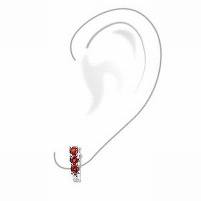 ELEGANT 3-Stone Natural Garnet SOLID 925 Sterling Silver Huggie Earrings