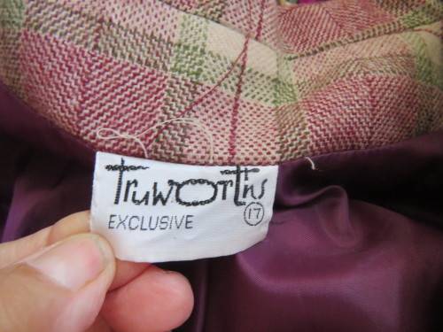 Elegant 38/14 check jacket by 'TRUWORTHS' in green,burgundy and cream.New condition.
