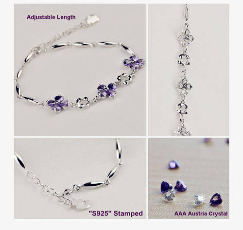 ELEGANT 925 SILVER RING, AUSTRIAN CRYSTAL FLOWER BRACELET