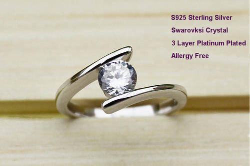 Elegant 925 Silver Ring, Platinum Plated, Austrian Crystal - ONE SIZE AVAILABLE