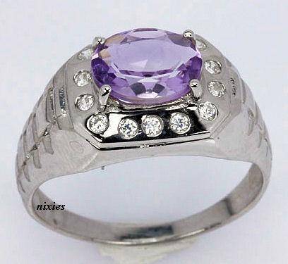OTHER GEMS CZ TYPE OF METAL 925 STERLING SILVER PLATE WHITE GOLD WEIGHT TOTAL 3.91 Gram WEIGHT GEMS 2.04 CT. SIZE( US ) 9 (S) 19.1mm DIMENSION(MM) 6X8 COLOR GEMS PURPLE CLARITY GEMS IF ORIGIN GEMS AFRICA TREATMENT UNHEATED