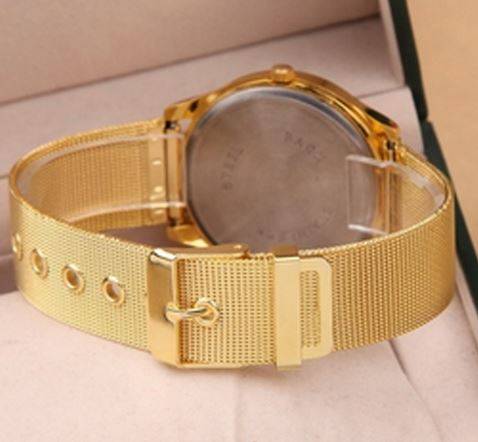 ELEGANT CLASSICAL LADIES BLACK FACE WITH A MESH GOLD PLATED METAL STRAP - STUNNING