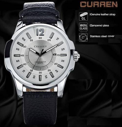 Elegant CURREN 8123 Military Mens Quartz Wrist Watch With Stainless Steel Strap - White & Silver