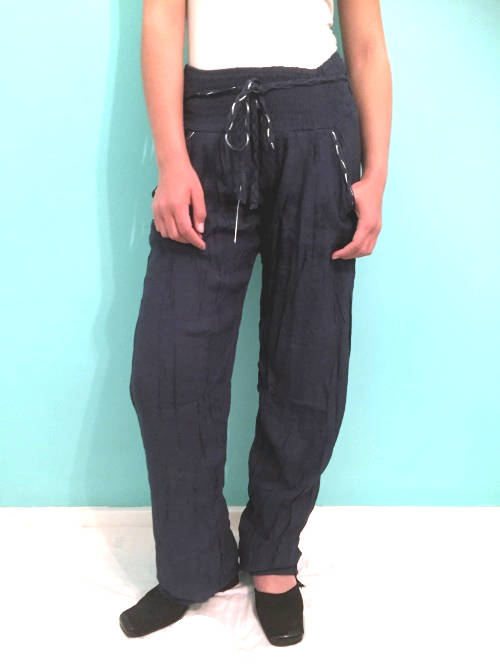 Elegant Elastic Waist Pants Adjustable Hem Midnight Blue , Black Sizes 30-40