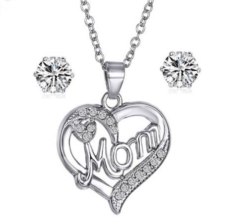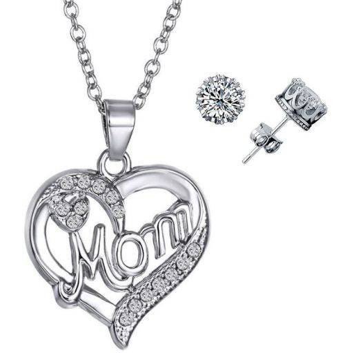 Elegant Jewelry Set With Rhinestone Mom Pendant in Complimentary Gift Box